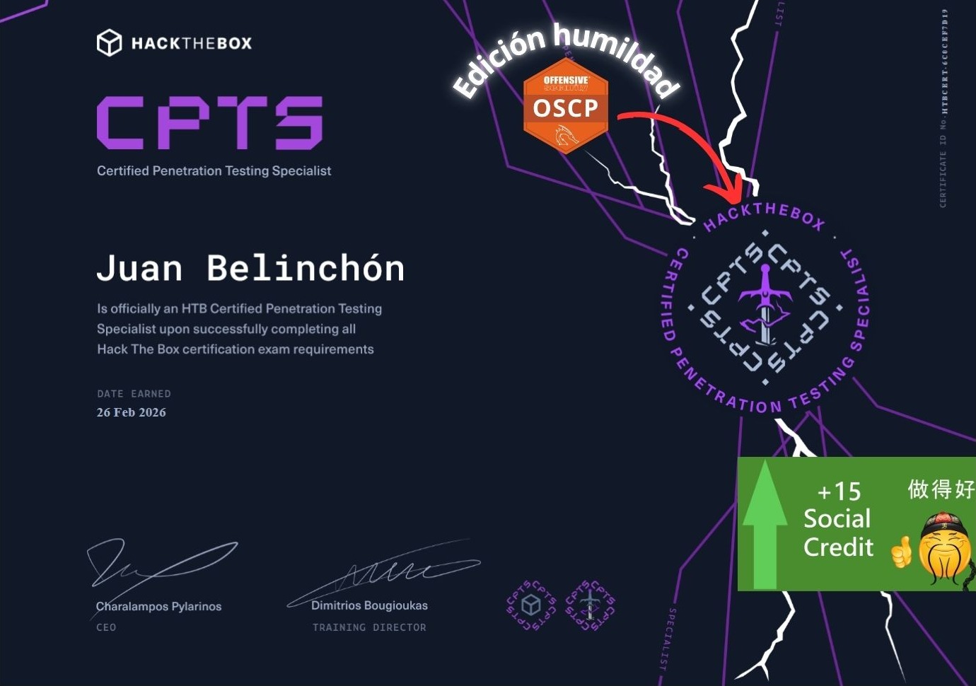 Quiero dejar claro que no estoy menospreciando a la OSCP, sino que me parece que por calidad precio, la CPTS hoy en día es una mejor opción.